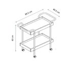 Carro auxiliar Bertolini modelo: 1284. Este maravilloso carro auxiliar tiene un extraordinario y moderno diseño; está pensado y fabricado para ser tu aliado al momento de consentir a tus invitados y hacerte ver como el mejor anfitrión de ese día. La combinación del MDP en las charolas y el Acero en su estructura, hacen este mueble ligero, pero de gran calidad. Tiene dos prácticas charolas, una en la parte superior; ideal para colocar vasos, botana, platos, etc. Y la segunda en la parte inferior; ideal para colocar botellas, hielera y demás aditamentos de gran tamaño. Tiene un acabado en pintura UV de alta resistencia, calidad y duración, lo cual lo hace un mueble más resistente a los pequeños arañazos y rayaduras del uso diario (no resiste daños graves ocasionados por objetos puntiagudos o punzocortantes) Disfruta de su diseño, practicidad y, sobre todo, combínalo con los demás muebles que Bertolini tiene para ti.