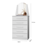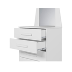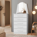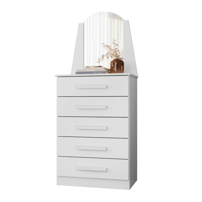 Dale a tu espacio un impulso de organización y sofisticación con la Cómoda Bertolini New Veneza color blanco. Este diseño minimalista cuenta con cinco cajones amplios y espejo curvo, perfecta para habitaciones pequeñas y estilos modernos. Estructurada con materiales duraderos, guías telescópicas y manijas de MDF revestido, esta cómoda te permite mantener orden y belleza en tu hogar, optimizando cada centímetro y facilitando tus rutinas de arreglo personal día a día. ¡Haz de tu hogar, un lugar acogedor y ordenado desde hoy!