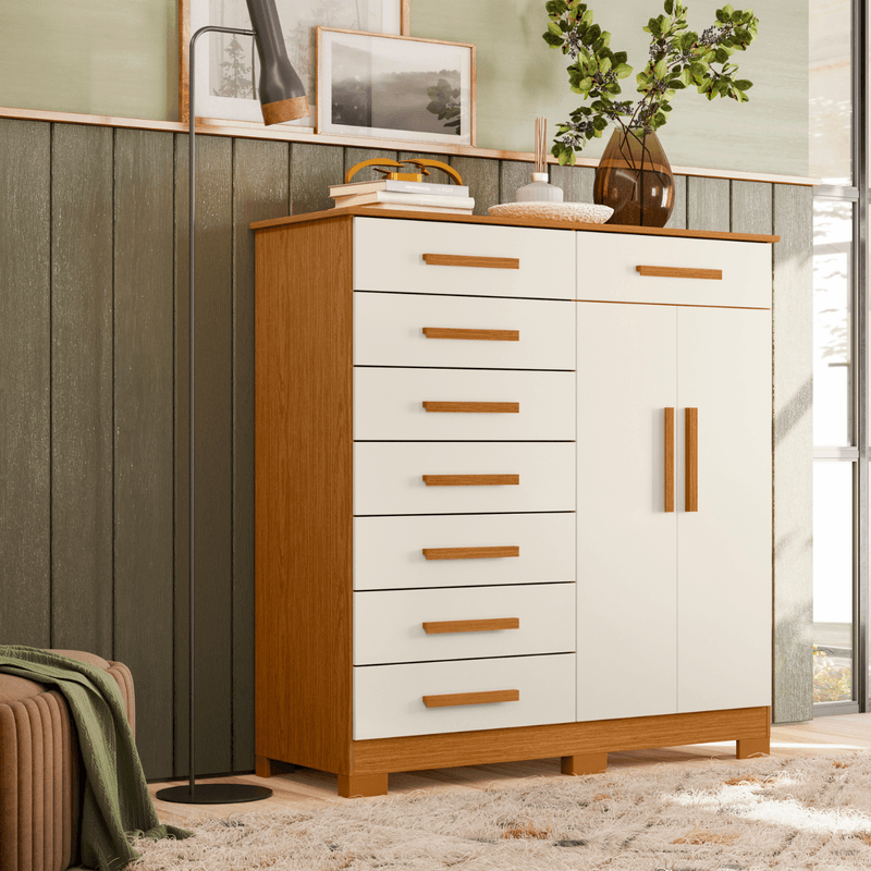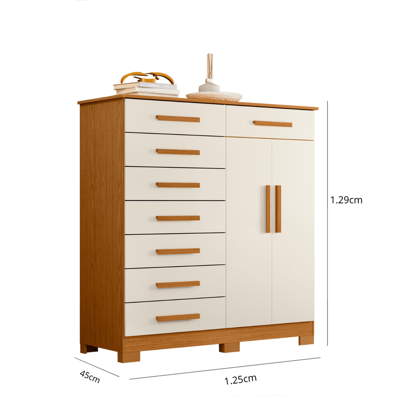 Cómoda bertolini verona 8 cajones armario cinamomo/off white