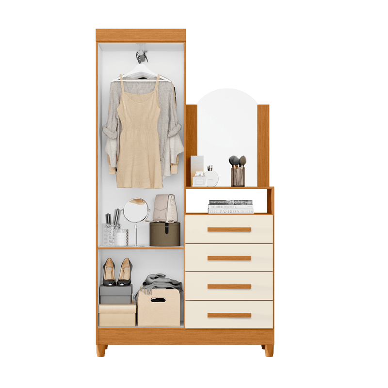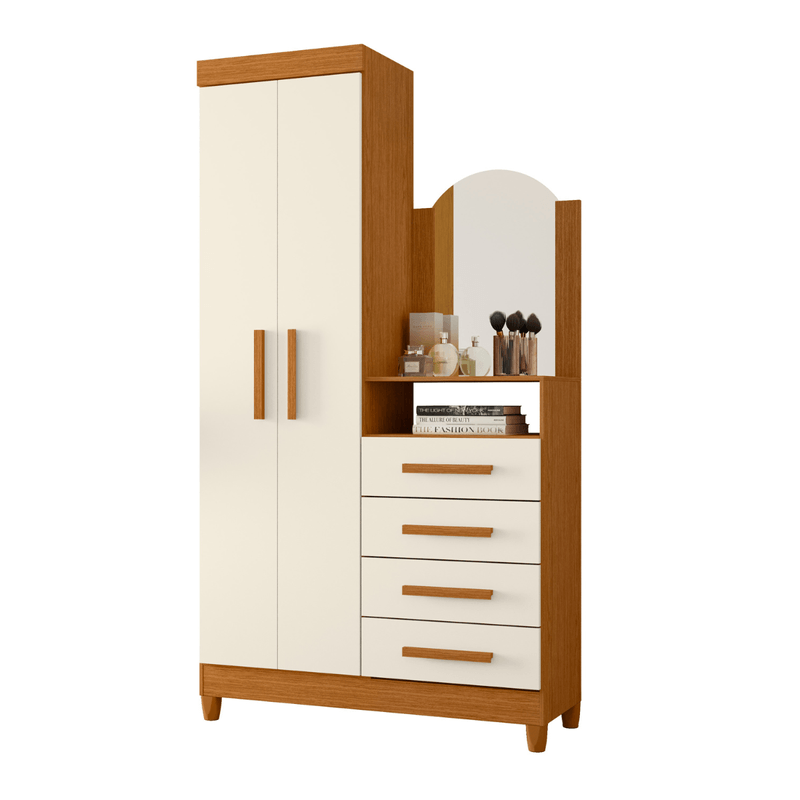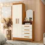 - Multifunción Atemporal: Combina almacenamiento vertical (2 puertas), 4 cajones profundos y un Tocador con Espejo elegante, optimizando cada centímetro.