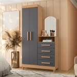 La Cómoda New Capri en color Freijo y Gris es la pieza que define tu estilo. La combinación de la Calidez de la madera Freijo con la Sobriedad y Elegancia del Gris te ofrece un look industrial-contemporáneo perfecto para tu primer departamento. No es solo una cómoda; es una solución 3 en 1 que resuelve almacenamiento, tocador y estilo. Siente la paz que te da un mueble robusto, con 4 cajones de deslizamiento suave (gracias a sus rieles telescópicos) y un espejo curvo que te prepara para conquistar el día. Es la inversión que te permite tener una recámara de revista, demostrando tu capacidad de elegir calidad y diseño. ¡Eleva el diseño de tu recámara con Bertolini!
