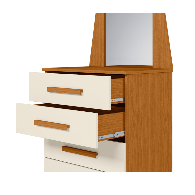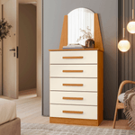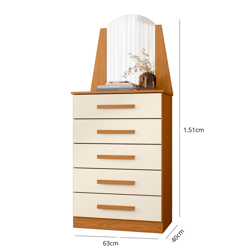 Dale a tu espacio un impulso de organización y sofisticación con la Cómoda Bertolini New Veneza color cinamomo contrastado con off white. Este diseño minimalista cuenta con cinco cajones amplios y espejo curvo, perfecta para habitaciones pequeñas y estilos modernos. Estructurada con materiales duraderos, guías telescópicas y manijas de MDF revestido, esta cómoda te permite mantener orden y belleza en tu hogar, optimizando cada centímetro y facilitando tus rutinas de arreglo personal día a día. ¡Haz de tu hogar, un lugar acogedor y ordenado desde hoy!