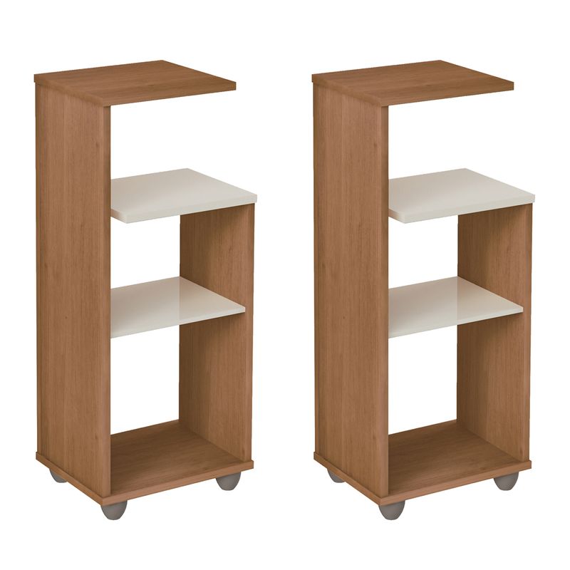 El juego de 2 mesas laterales Bertolini Bis es la solución perfecta para maximizar la funcionalidad en cualquier habitación. Con un acabado elegante en color cerezo y off white, estas piezas aportan un toque cálido y contemporáneo a tu sala, recámara u oficina.