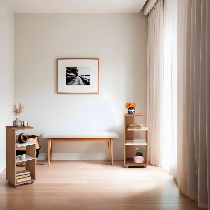 Cada mesa está fabricada en MDP de alta calidad, garantizando durabilidad y resistencia. Su diseño integra 4 entrepaños amplios, ideales para mantener organizados libros, módems, teléfonos o artículos decorativos sin ocupar espacio excesivo.