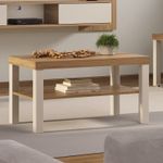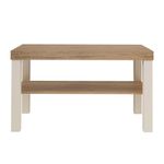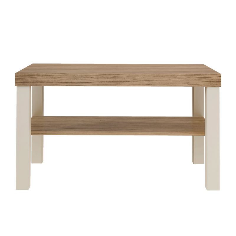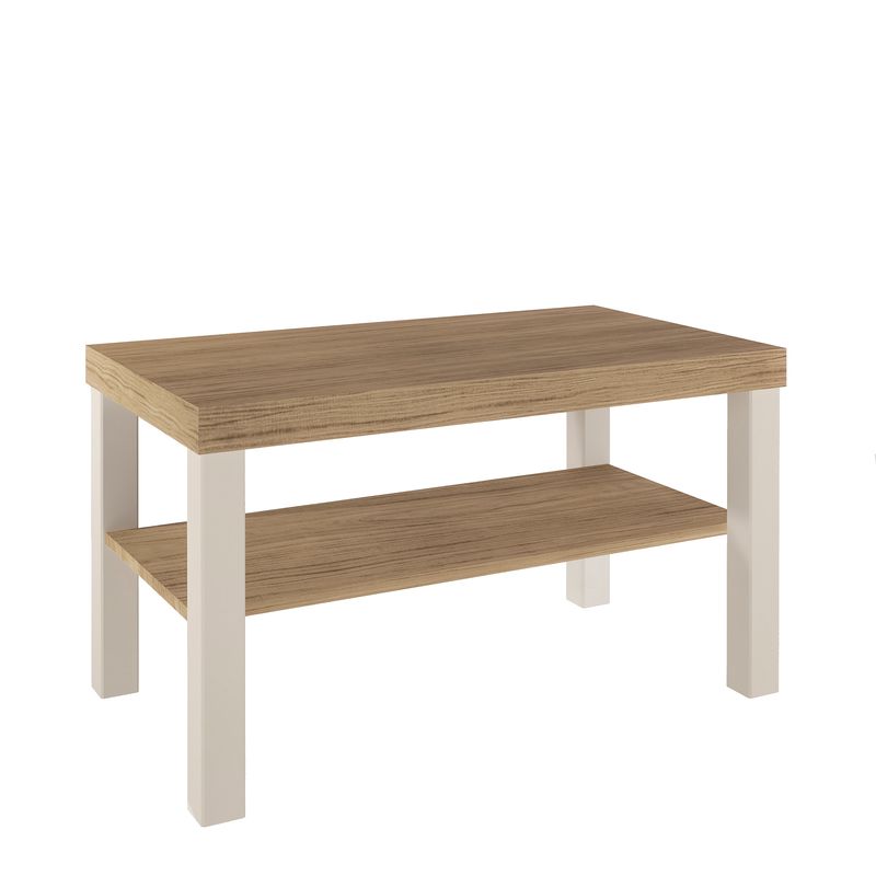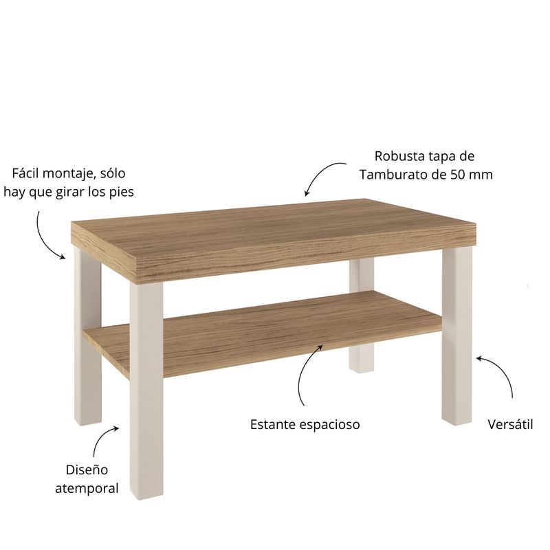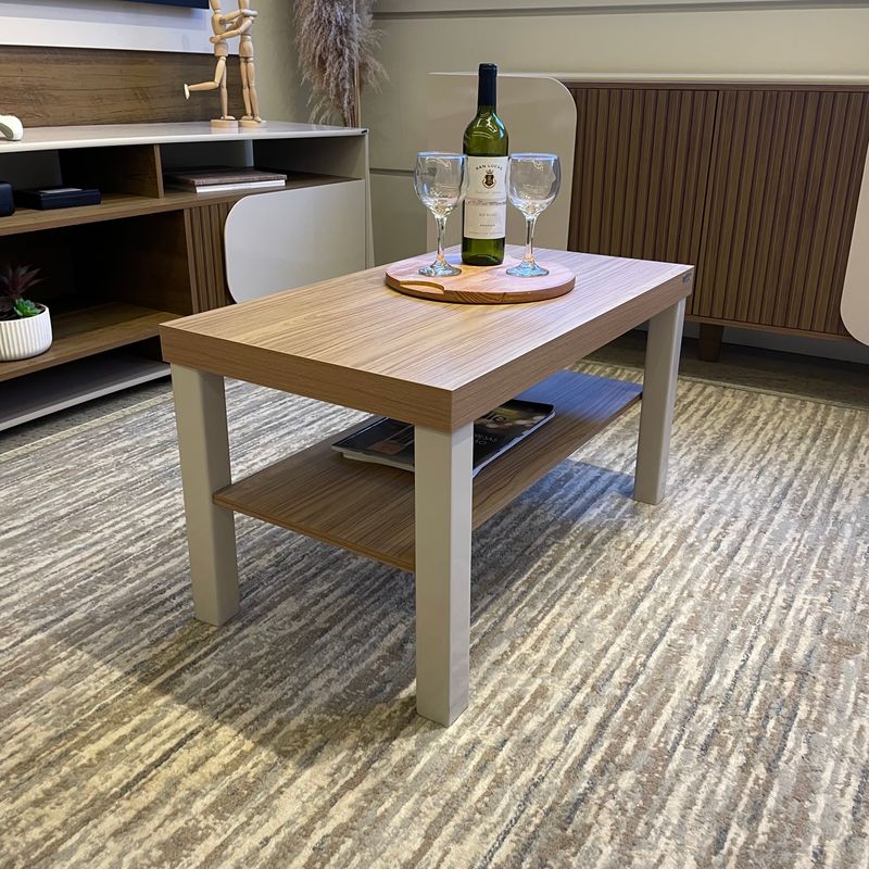 Mesa de Centro Bertolini Up. Diseñada para salas modernas y espacios contemporáneos, combina un acabado roble con off white que aporta elegancia y armonía visual al ambiente. Fabricada con estructura en MDP de 15 mm y tamburato de 50 mm, ofrece alta resistencia, durabilidad y una superficie estable, mientras que sus patas de madera rectangulares refuerzan la firmeza y añaden un toque geométrico distintivo. El acabado en pintura UV asegura una limpieza sencilla y protección adicional contra el desgaste diario.