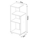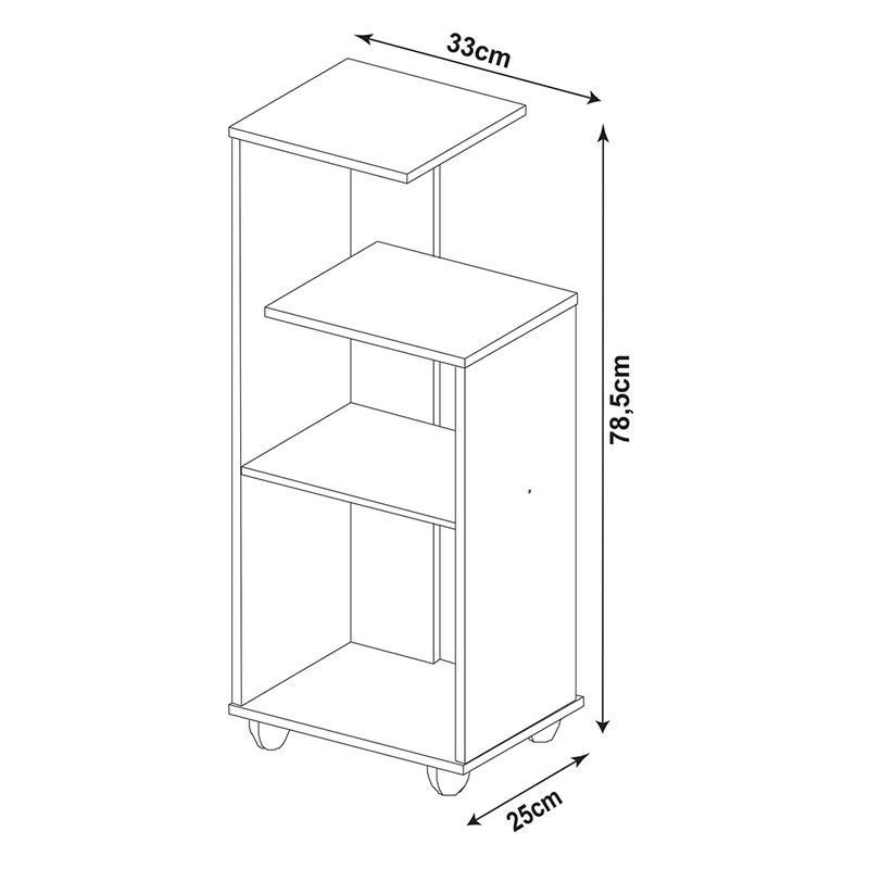 Equipada con 4 ruedas giratorias, permite moverla fácilmente para limpiar, reorganizar o cambiarla de sitio según las necesidades. Con dimensiones de 79 cm de alto, 33 cm de largo y 25 cm de ancho, ofrece capacidad suficiente sin ocupar demasiado espacio, manteniendo una presencia estética y equilibrada. Es un producto armable que incluye manual y kit completo de herrajes, logrando un ensamblado sencillo y estable.