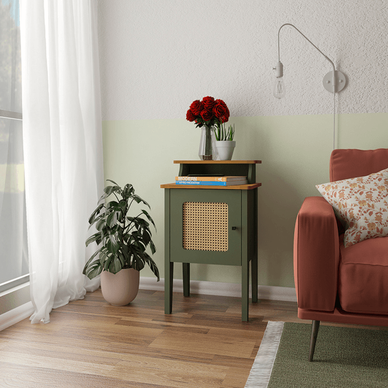 Mesa Lateral Auxiliar Bertolini Charlotte 1 Puerta color Verde Roble