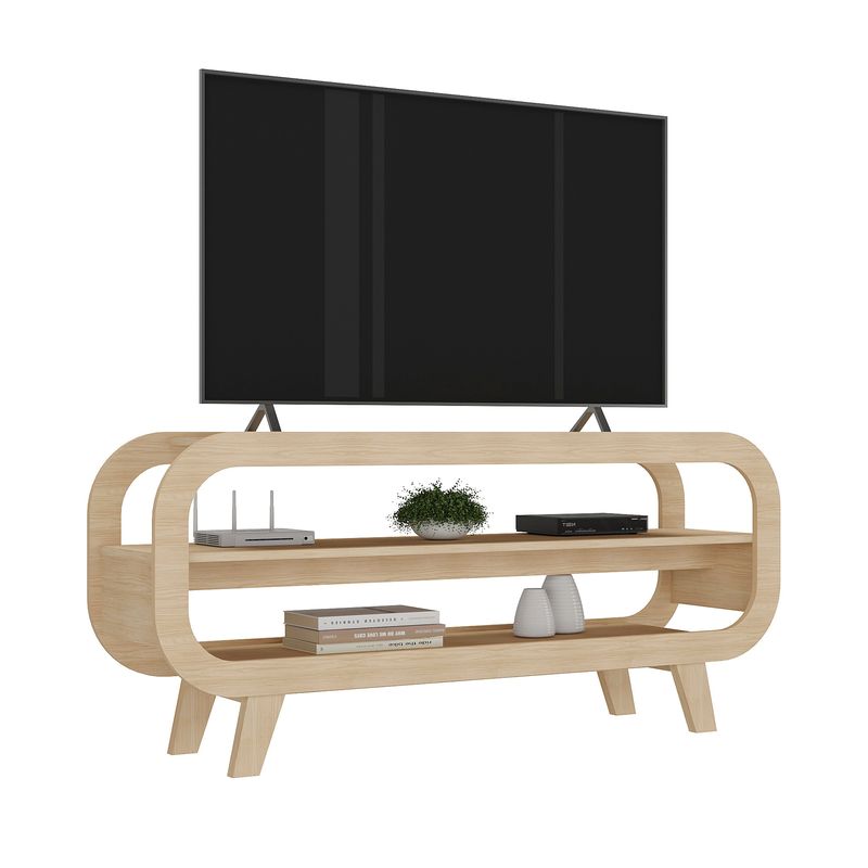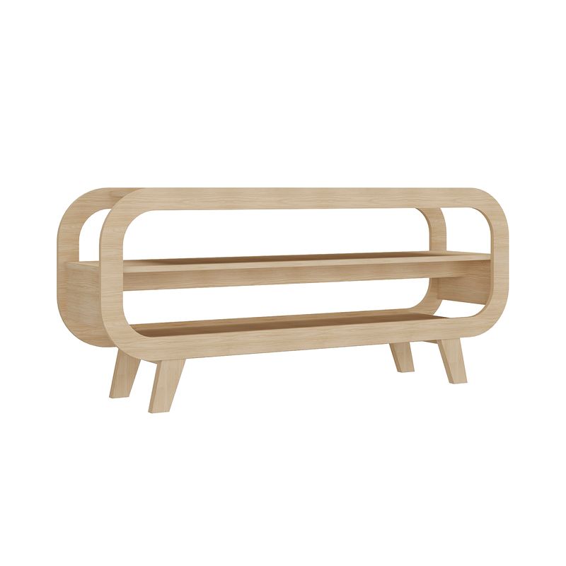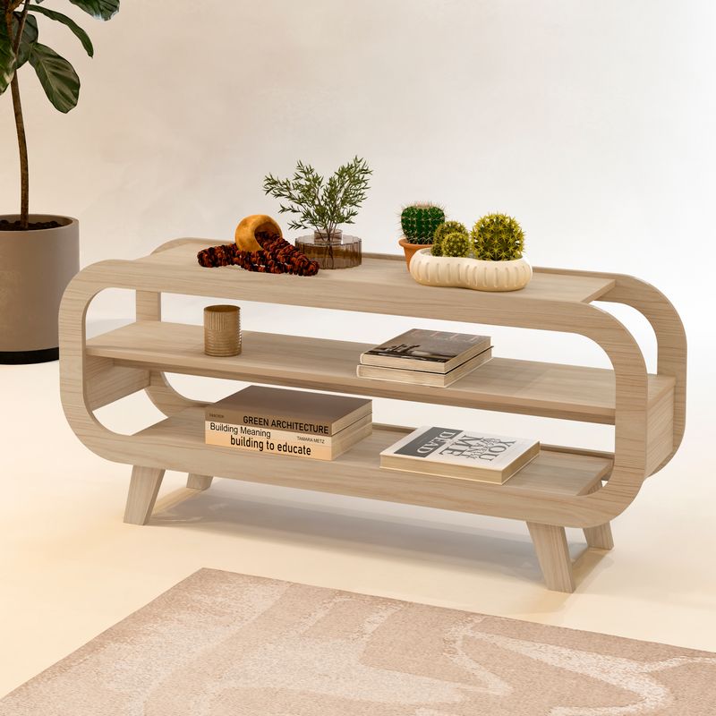 Mueble para TV Bertolini THÉO. Diseñado para salas y espacios de entretenimiento, este mueble armable combina un diseño curveado e innovador con materiales de alta calidad: estructura en MDP y acabado en pintura UV que ofrece mayor durabilidad, resistencia a rayaduras y limpieza sencilla.