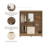 El ropero Bertolini Movily Capelinha en color freijo con gris es un armario individual moderno y funcional, ideal para quienes buscan ordenar su recámara con estilo. El tono freijo aporta la calidez de la madera natural, mientras que el gris suma un toque contemporáneo y elegante, creando un contraste equilibrado que luce en recámaras modernas o clásicas. Con 4 puertas, 2 cajones, 3 estantes internos, percheros y un espejo central tipo “capelinha”, te permite organizar ropa, calzado y accesorios en un solo mueble. Fabricado en MDP con acabado en pintura UV semibrillante, está diseñado para el uso diario y para aprovechar al máximo el espacio de tu dormitorio.