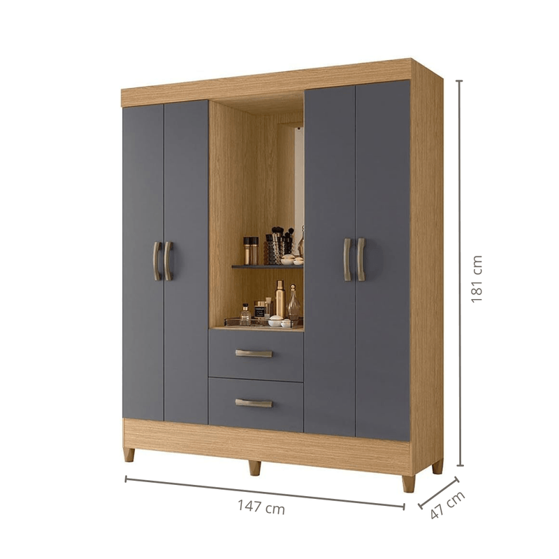 ¿Ya conoces el Armario Bertolini Movyli capelinha de 4 puertas color freijo con gris con espejo?