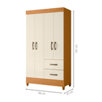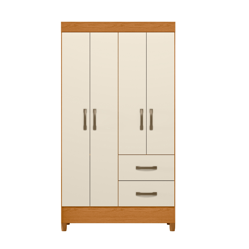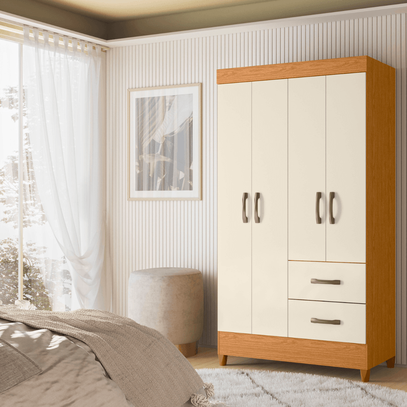 El armario ropero individual Bertolini Movyli en color cinamomo/off white es un clóset compacto y práctico, ideal para recámaras pequeñas o dormitorios individuales. El tono cinamomo aporta calidez y sensación de madera natural, mientras que el off white ilumina el espacio y da un toque moderno y ligero. Sus 4 puertas, 2 cajones exteriores, percheros y estantes internos permiten organizar ropa, zapatos y accesorios sin perder espacio. Fabricado en MDP con acabado en pintura UV, ofrece buena resistencia para el uso diario y un diseño fácil de integrar a distintos estilos de decoración.