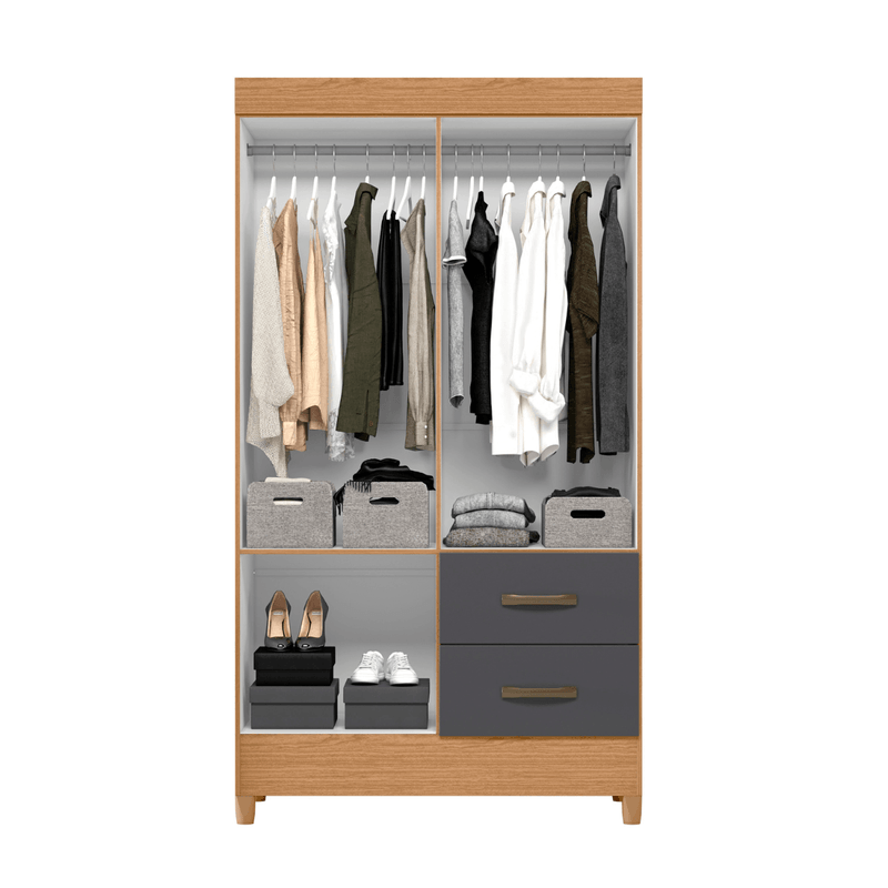 El armario ropero multiusos Bertolini Movyli en color freijo/gris es un clóset compacto y práctico, ideal para recámaras pequeñas o dormitorios individuales. El tono freijo aporta la calidez de la madera, mientras que el gris suma un toque moderno y elegante, creando un contraste equilibrado que se adapta a diferentes estilos de decoración. Sus 4 puertas, 2 cajones exteriores, percheros y estantes internos permiten organizar ropa, zapatos y accesorios sin perder espacio. Fabricado en MDP con acabado en pintura UV, ofrece buena resistencia para el uso diario y una apariencia actual y armoniosa en tu habitación.