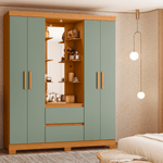 ¿Ya conoces el Ropero Bertolini Olympia de 4 puertas con espejo e iluminación LED color cinamomo con verde?