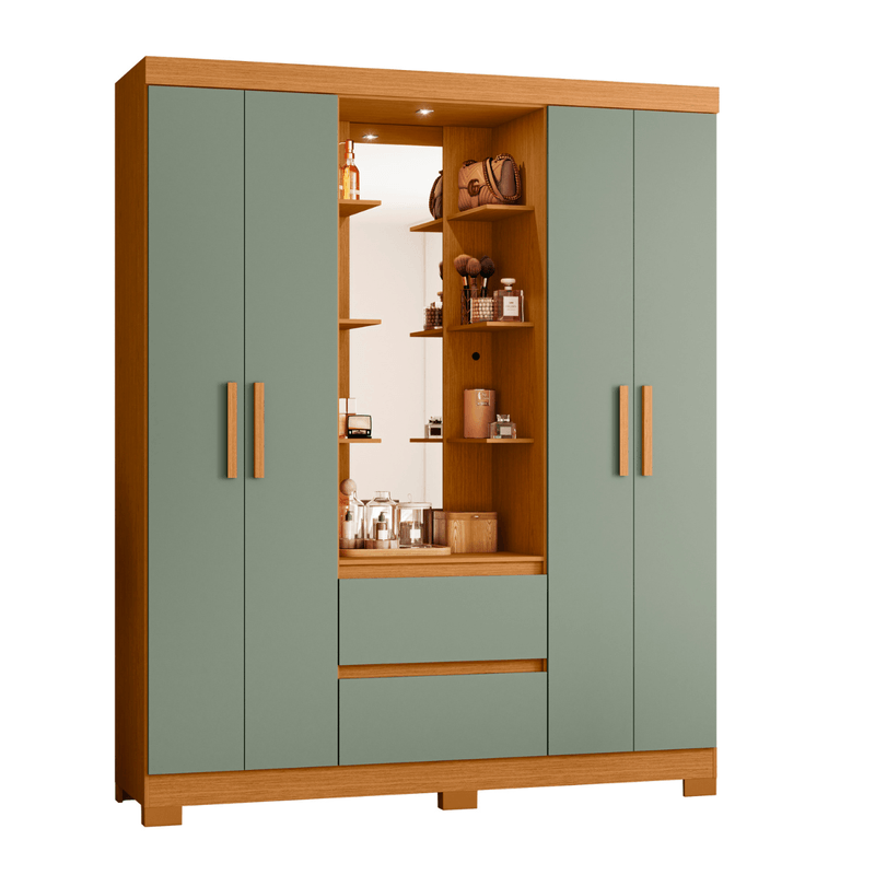 Elige el Ropero Armario Bertolini Olympia color cinamomo con verde y transforma tu habitación en un espacio más organizado, moderno y acogedor.