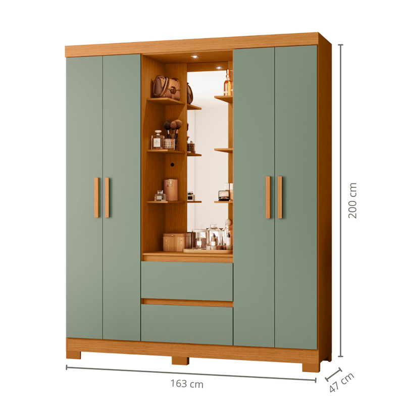 Detalles del Ropero Clóset Bertolini Olympia con espejo e iluminación LED color cinamomo y verde
